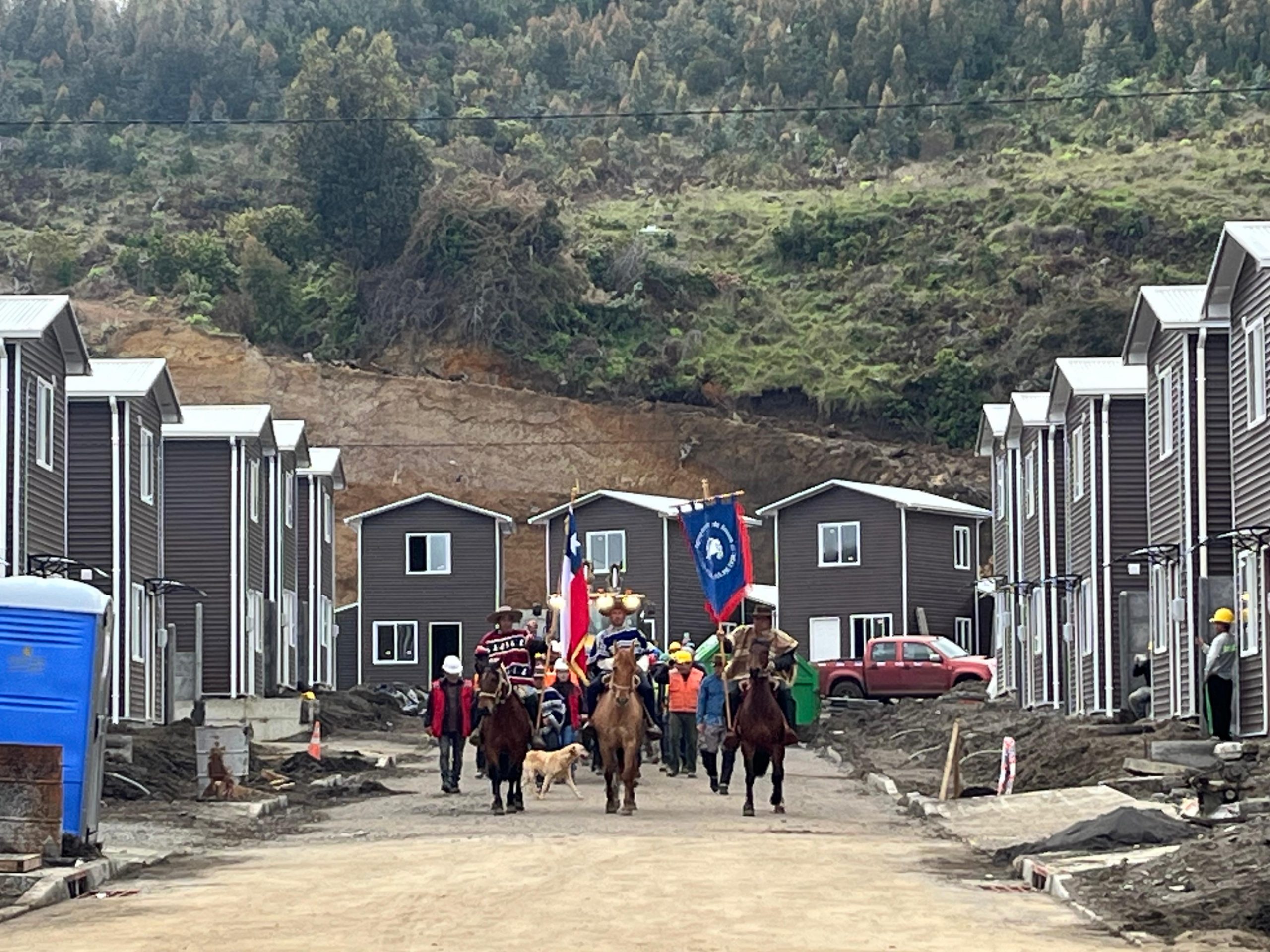 “Los Moraga y Compañía” se tituló la fonda de la obra ubicada en la comuna de Lebu, que contó con un desfile donde circularon huasos a caballos, colaboradores de la obra y la maquinaria pesada del proyecto.